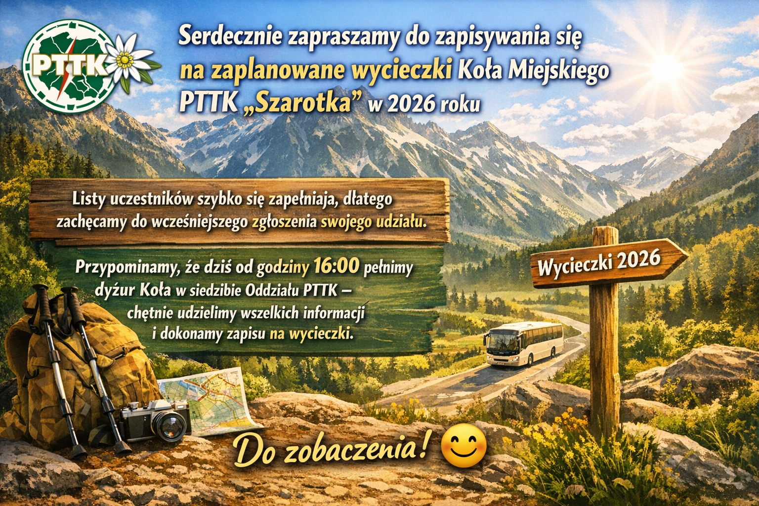 Zaproszenie do zapisywania się na zaplanowane wycieczki w 2026 roku.